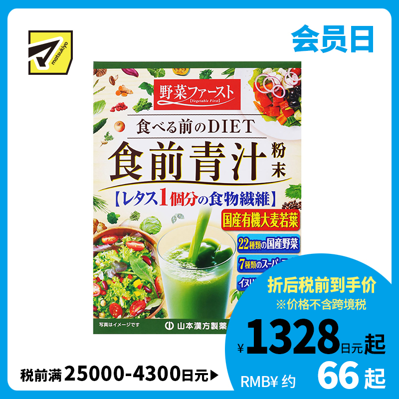 [商品名称]山本汉方 餐前青汁粉末 22种蔬菜膳食纤维代餐粉 均衡营养弥补蔬菜摄取不足 4.1gx30包
