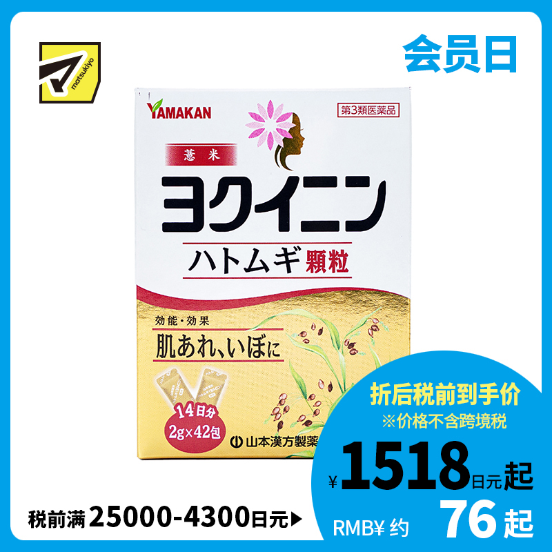 [商品名称]山本汉方 缓解皮肤粗糙扁平疣祛湿气水肿 薏米仁浓缩颗粒 42包 促进新陈代谢激活皮肤免疫力 薏苡仁薏仁养生