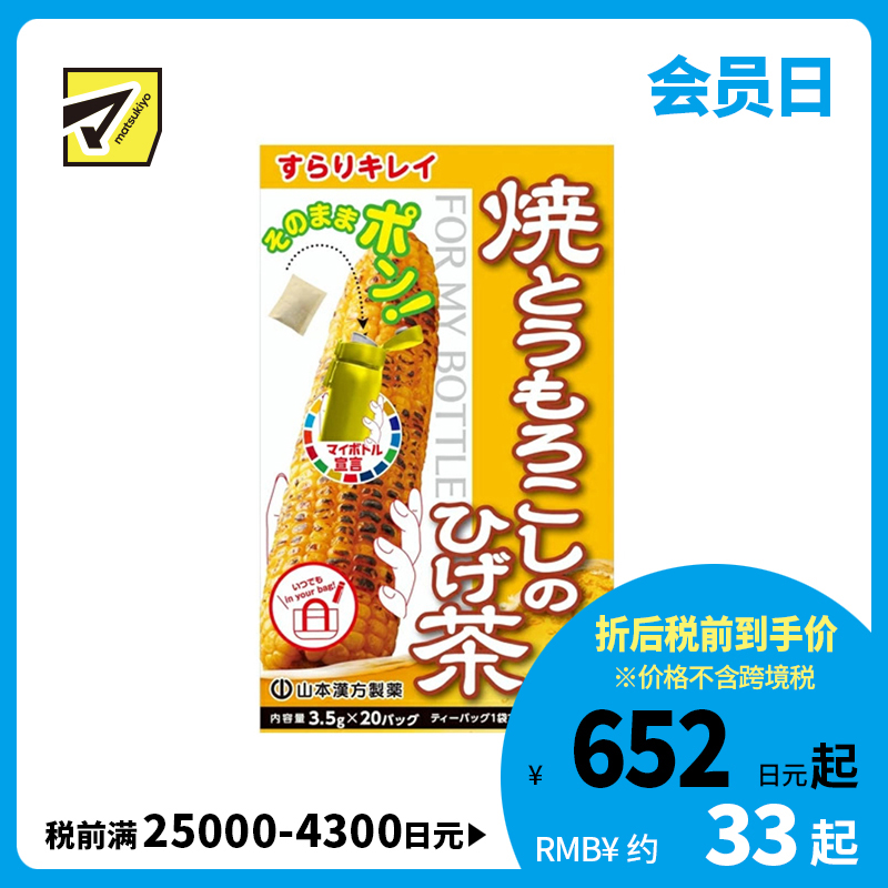 [商品名称]山本汉方 温润香醇 便携焙煎 玉米须茶 3.5g×20包 温和清香 轻松随行 可冷泡热泡 无咖啡因