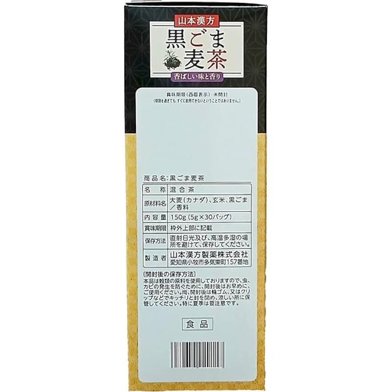 [商品名称] 山本汉方 香焙谷物风味 无咖啡因 冷热皆宜 黑芝麻麦茶茶包 5g×30包 清爽顺口 焙炒香气突出 大容量