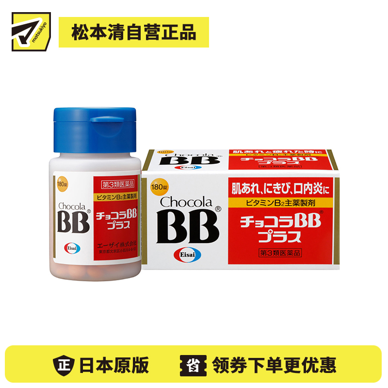 [商品名称] Eisai 缓解肌肤粗糙 口腔溃疡 Chocola BB Plus VB美肌片 180粒 修复 抗疲劳 维生素B【第3类医药品】