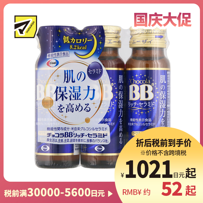 [商品名称]Eisai chocola BB神经酰胺胶原蛋白保湿补水口服液 低热量 不含咖啡因 50ml×3