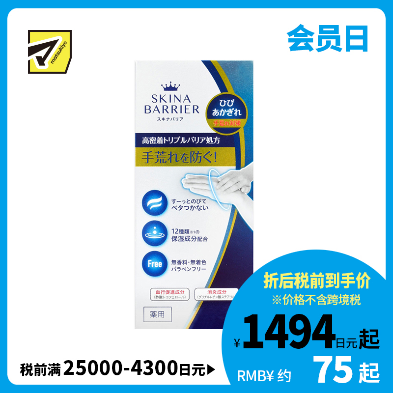 [商品介绍] 专为手部干燥粗糙人士打造的皮肤保护霜。采用三重高密着屏障配方,质地轻盈易延展,不粘腻。蕴含12种保湿成分,且不含香料、色素和对羟基苯甲酸酯(防腐剂)。添加维生素E,帮助促进血液循环,以及硬脂酸甘草次酸酯,舒缓肌肤,预防皲裂、冻疮和手部干裂,保持肌肤健康。