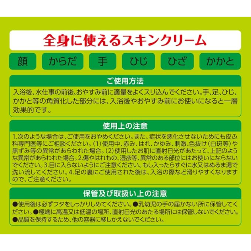 [商品介绍] 专为干燥肌设计,质地柔和易吸收,可用于脸部及全身。添加天然保湿成分芦荟精华与薏仁提取物,帮助肌肤保持滋润与柔软,同时融合:维生素E、维生素B6、甘草酸二钾,不仅可以预防肌肤干裂、粗糙,还适用于因干冷天气造成的冻疮、皲裂、红痒等问题。无香料、无着色、无酒精配方,适合全家使用,尤其适合需要长效滋润的敏感肌或高干燥肌人群,温和守护每一寸肌肤。
