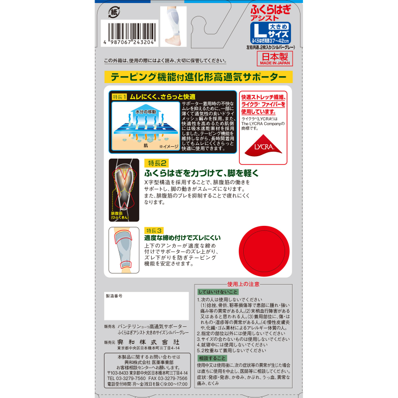 [商品名称] 兴和 减轻腿部负担 高透气性 弹性贴合 护腿袜套 L码 2枚 左右通用 顺滑触感 不易移位