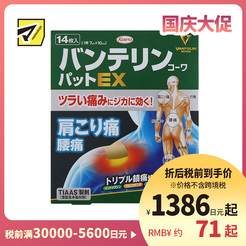 [商品名称]KOWA兴和VANTELIN万特力 山金车薄荷消炎镇痛膏药贴EX 舒缓肩膀僵硬腰痛7×10mm 14枚 【第2类医药品】