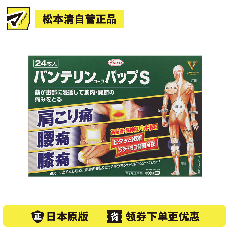 [商品名称]KOWA兴和VANTELIN万特力 凉感镇痛膏药贴 缓解腰肩关节疼痛扭伤挫伤14×10mm S 24枚 【第2类医药品】