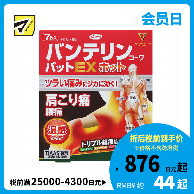 [商品名称]KOWA兴和VANTELIN万特力 山金车薄荷温感消炎镇痛膏药贴EX 舒缓肩膀僵硬腰痛7×10mm 7枚 【第2类医药品】