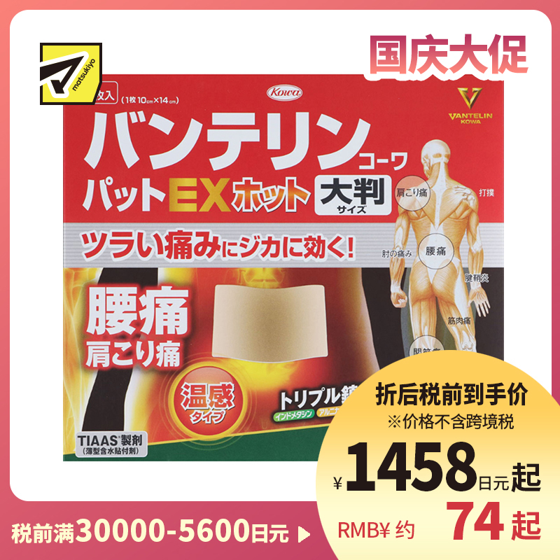 [商品名称]KOWA兴和VANTELIN万特力 山金车薄荷温感消炎镇痛膏药贴EX 舒缓肩膀僵硬腰痛 大尺寸10×14mm 7枚 【第2类医药品】