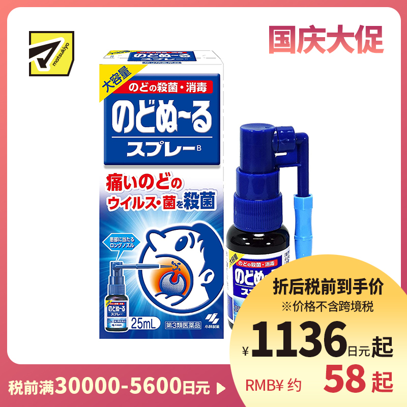 [商品名称]小林制药 候咻露 咽喉杀菌消毒喷剂 缓解咽喉肿痛 特长喷嘴 25ml【第3类医药品】