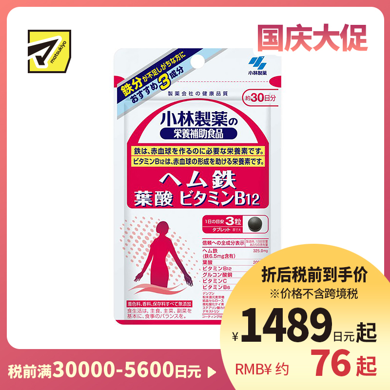 [商品名称]小林制药 补铁片 改善贫血 叶酸维生素B12营养素 90粒