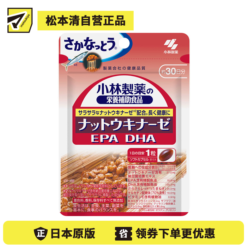 [商品名称] 小林制药 纳豆激酶配合 营养补充 深海鱼油EPA+DHA 营养软胶囊 30粒 30天量 不添加香料色素防腐剂 营养调理