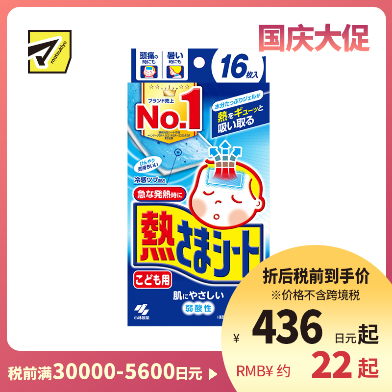 [商品名称] 小林制药 儿童专用 物理冷敷 冷感凝胶 温和不刺激 退热贴 16片 降温贴 弱酸性 持续冷感约8小时