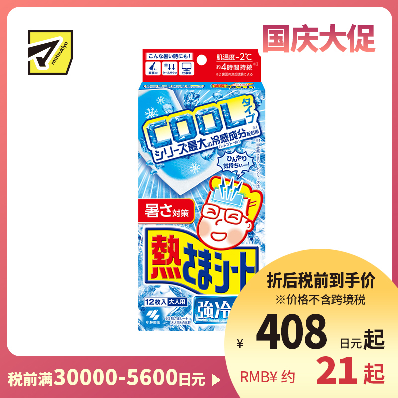 [商品名称] 小林制药 成人专用 持久降温 温和贴肤 强力冷感 退热贴 12片 清爽冰凉 方便即贴设计 弱酸性凝胶