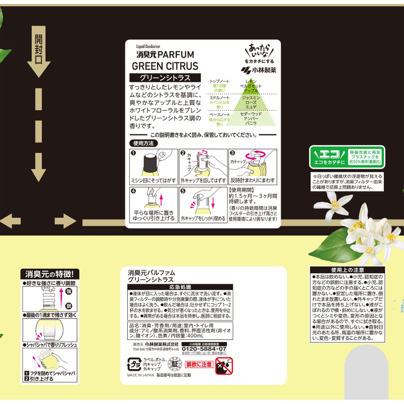 1号仓-小林制药 长效扩香 迅速清新 室内厕所通用 空气清新剂 400ml 青柠柑橘香 消臭元 高端香氛 除臭香氛