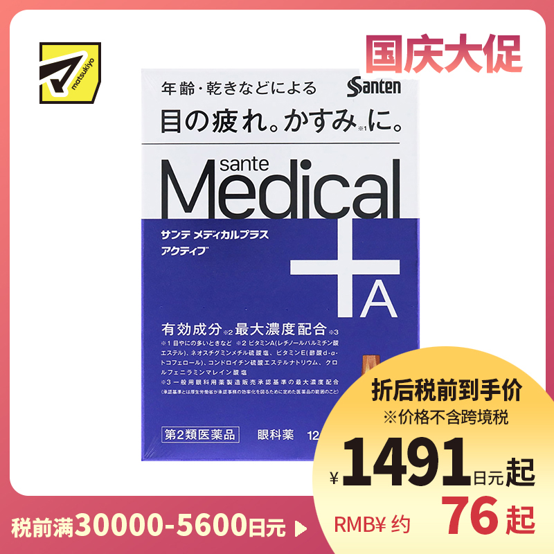 [商品名称]参天制药 Sante参天 Medical Plus 12 护理型抗疲劳眼药水 缓解老花眼干燥视力模糊 12ml
