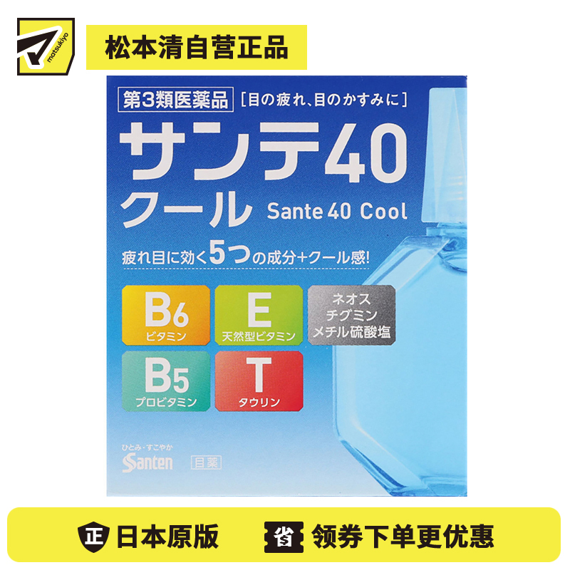 [商品名称]参天制药 Sante参天40 cool眼药水滴眼液舒缓视疲劳清凉舒爽缓解干涩视力模糊 清凉感加强 12ml