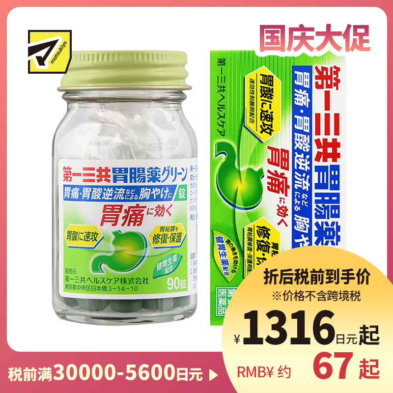 [商品名称]第一三共 助消化增强胃功能保护胃粘膜 肠胃药整肠药绿色片剂 90粒 healthcare 中和胃酸抑制胃痛【第2类医药品】
