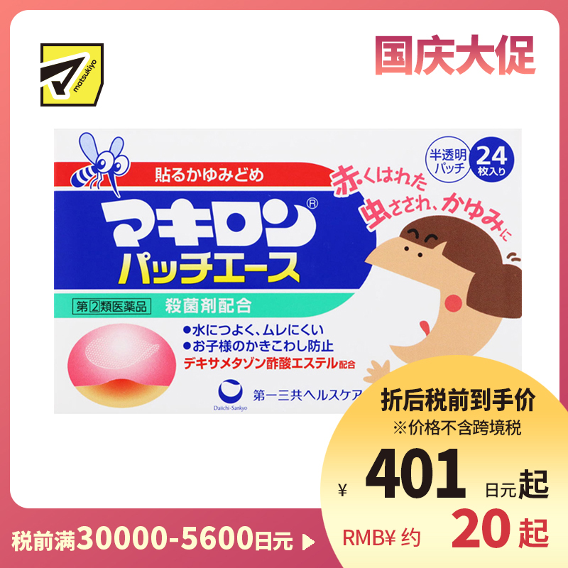 [商品名称]第一三共 Makiron儿童用蚊叮虫咬消炎止痒贴 杀菌剂配方 抑制瘙痒 防止抓伤 24片【指定第2类医药品】