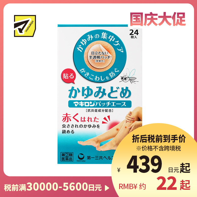 [商品名称]第一三共 Makiron蚊虫叮咬消炎止痒贴 抑制瘙痒 防止抓伤 半透明设计贴后不明显 24片【指定第2类医药品】