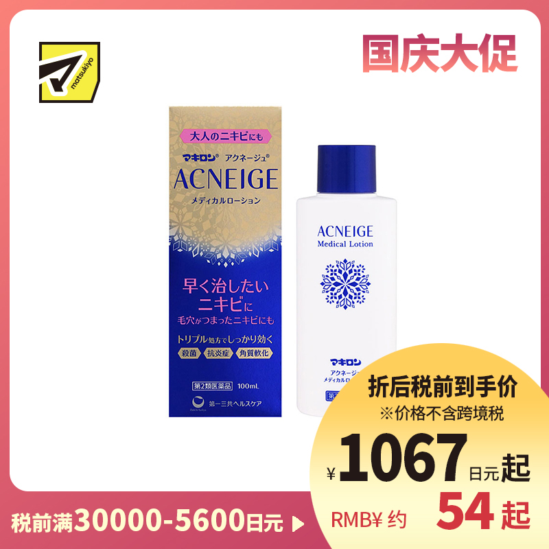 [商品名称]第一三共 Makiron ACNEIGE 杀菌消炎 祛除痘痘祛痘药水 100ml 软化角质 无香料 无酒精【第2类医药品】