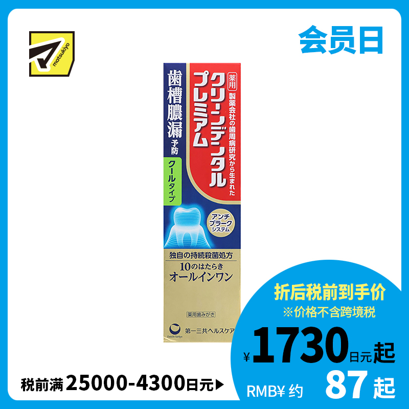[商品名称]第一三共cleandental牙膏高浓度含氟美白去牙渍清爽薄荷味100g