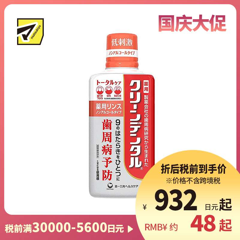 [商品名称]第一三共clean dental 清新口气预防牙周炎牙龈肿胀 药用全效护理漱口水 450ml 预防牙石沉积 不含酒精孕妇可用