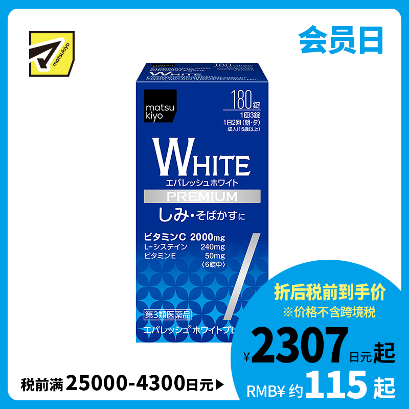 [商品名称]松本清matsukiyo 促进皮肤新陈代谢 预防色素沉淀淡斑修护美白丸【第3類医薬品】 180粒