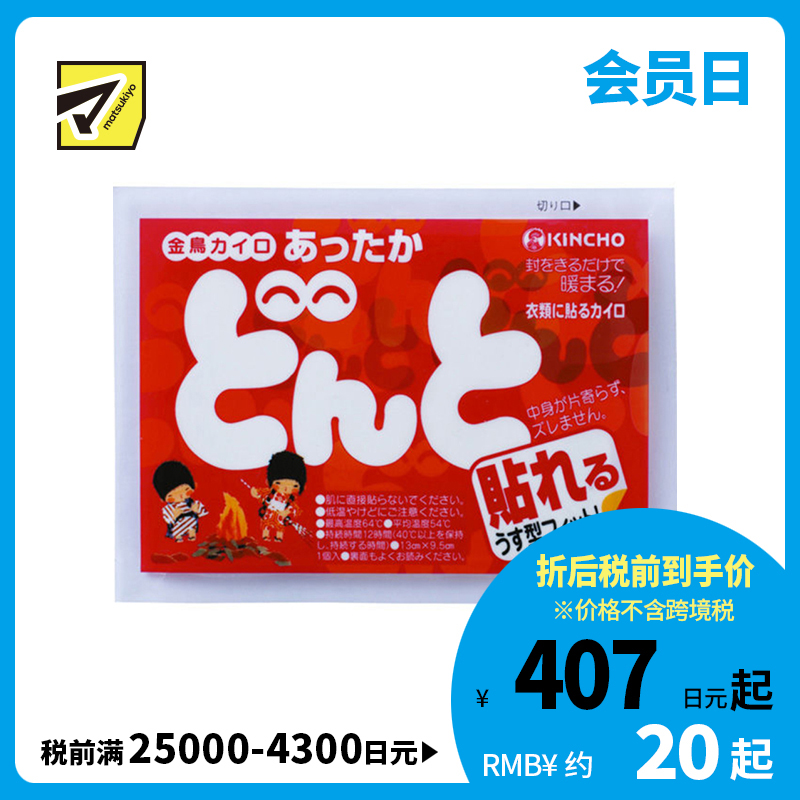 [商品名称]KINCHO金鸟 DONTO 暖宝宝(粘贴型) 牢固贴合衣物 防寒暖身 10个装