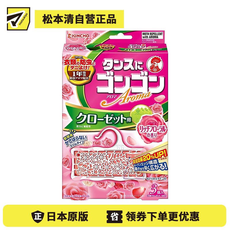 [商品名称]KINCHO金鸟 防蛀去异味悬挂式衣物驱虫片持久一年 花香 3个