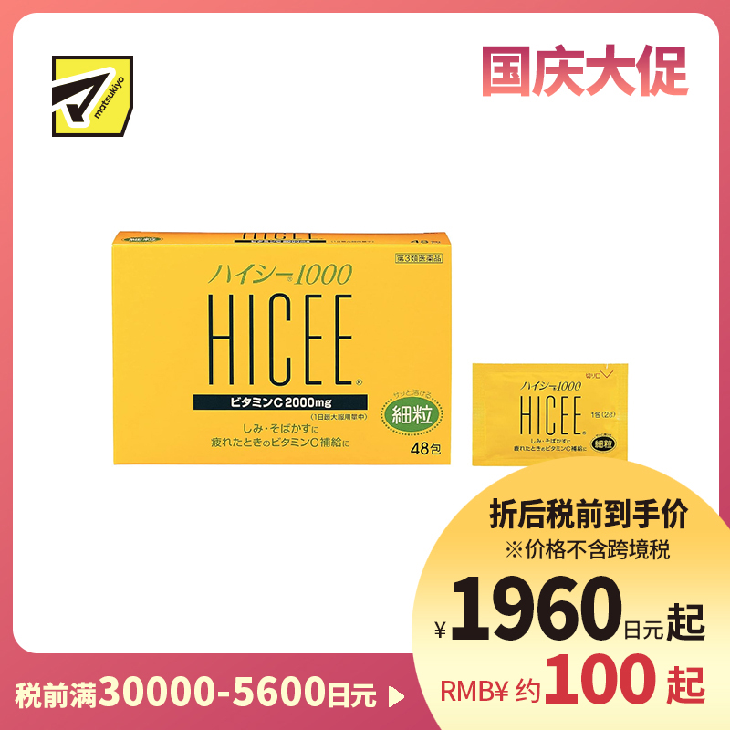 [商品名称] 爱利纳明制药 武田HICEE 1000维生素C粉末 48包 细颗粒 抑制黑色素 改善色斑雀斑 【第3类医药品】