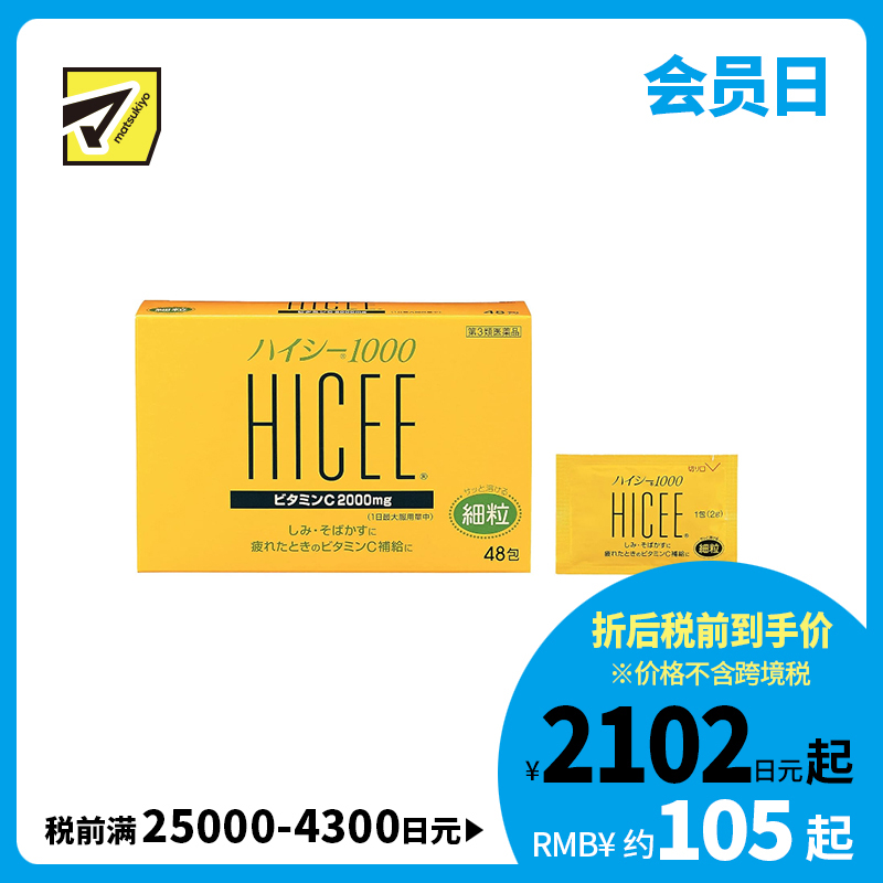 [商品名称] 爱利纳明制药 武田HICEE 1000维生素C粉末 48包 细颗粒 抑制黑色素 改善色斑雀斑 【第3类医药品】