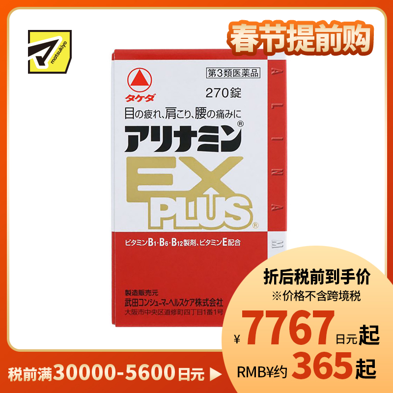[商品名称]alinamin爱利纳明 合利他命 复合多种维B族EX PLUS 缓解疲劳 肌肉酸痛 270片