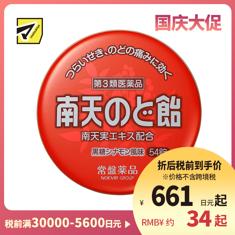 [商品名称]常盘 润喉止咳 舒缓声音嘶哑 南天润喉糖 黑糖肉桂味 54粒 TOKIWA 缓解喉咙干涩肿胀 咽喉含片【第3类医药品】