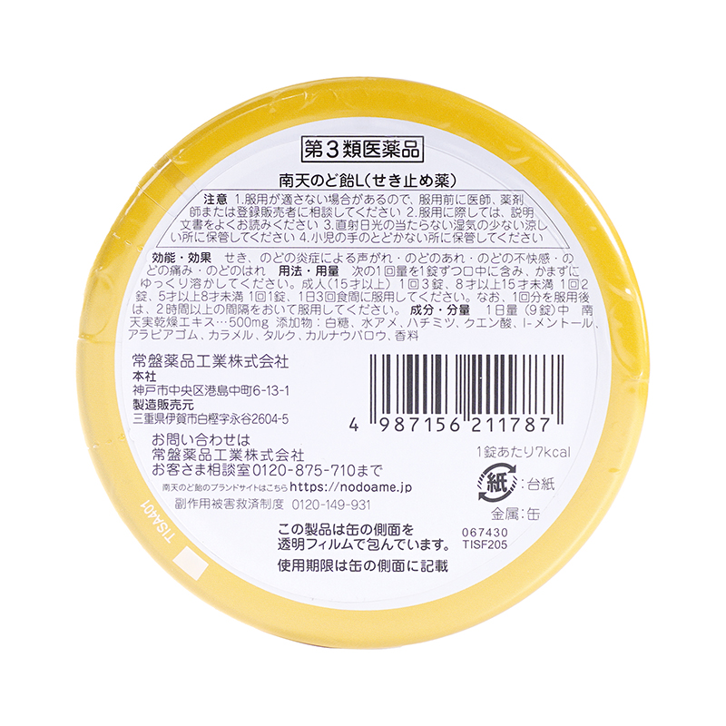 [商品介绍] 一款含片型的止咳类医药品,选用自古以来被用于煎煮服用、常用于应对咳嗽及喉咙不适的「南天」果实作为有效成分,入口为蜂蜜柠檬风味,含服时口感温和,便于日常使用。当你因咳嗽频繁、喉咙疼痛或不适而感到困扰时,可通过含服的方式,让成分在口腔与咽喉部位慢慢作用,适合在喉咙不舒服、说话费力时作为随身携带的含片型选择。