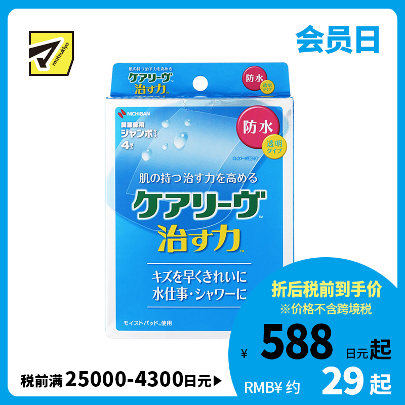 [商品名称]NICHIBAN米琪邦 治愈之力系列透明防水创可贴 水胶体敷料促进伤口愈合 超大号 4片