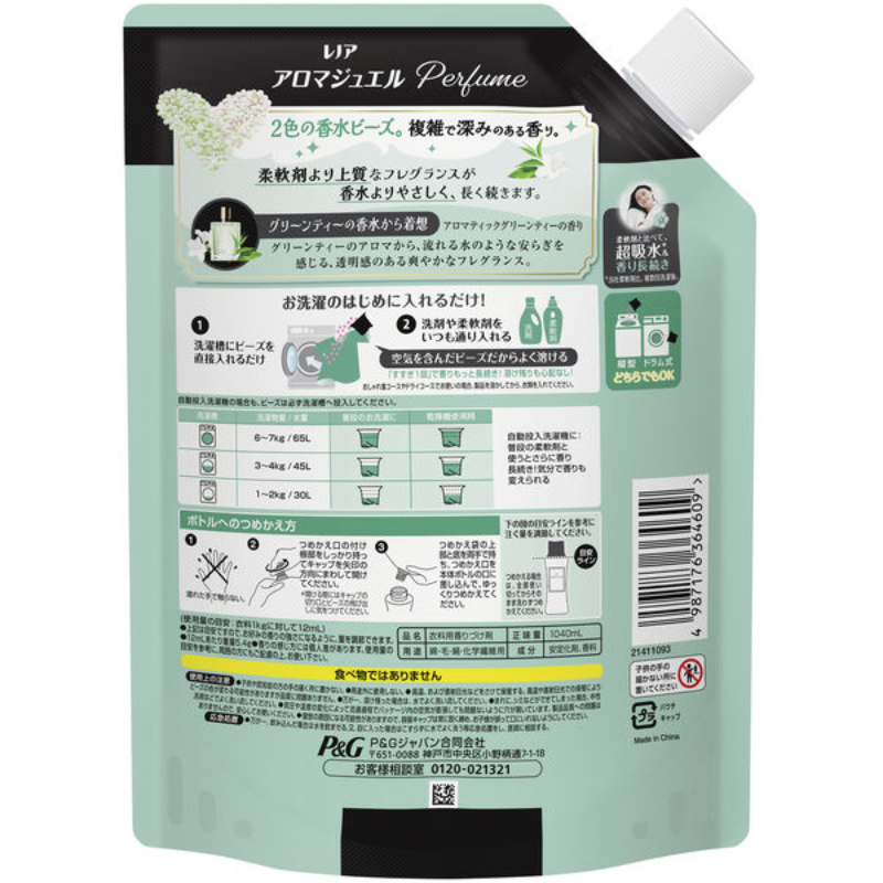 [商品名称] Lenor 衣物柔顺 持久留香 留香珠特大补充装 1040ml 绿茶香 P&G 去异味 中和汗味 适用于滚筒洗衣机波轮洗衣机 香氛凝珠