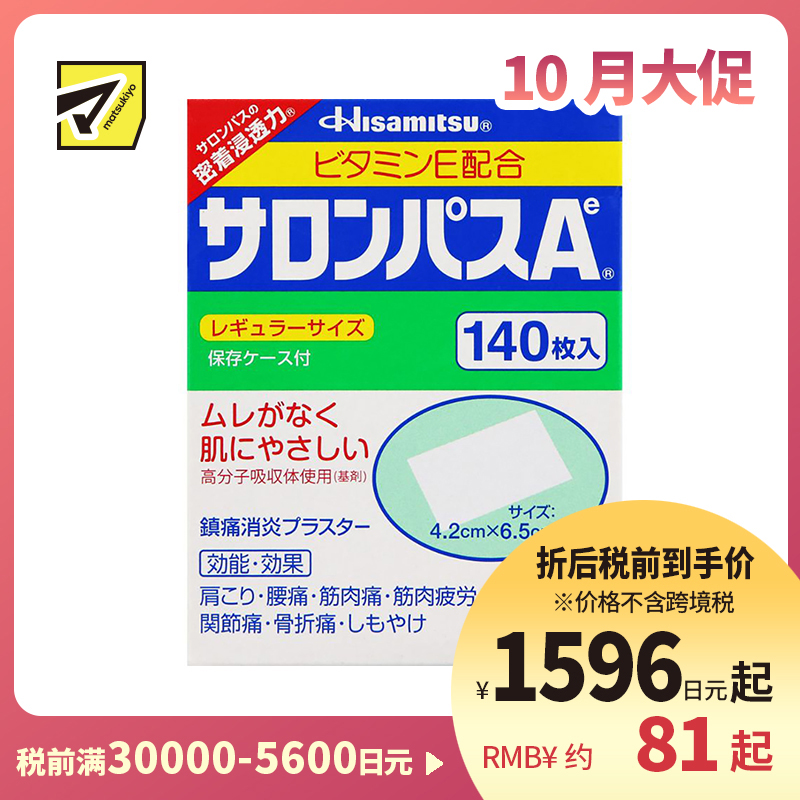 [商品名称]久光制药 撒隆巴斯Ae 止痛膏药贴消炎 手腕关节膏药 4.2×6.5cm 140贴