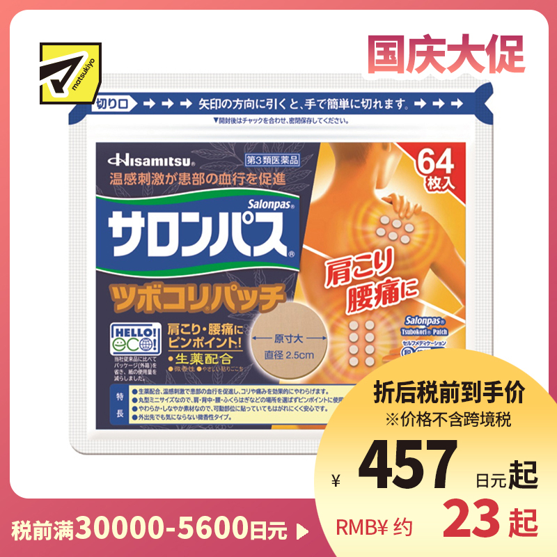 [商品名称] 久光制药 撒隆巴斯 生药配方 缓解肩颈腰痛 小圆贴 64枚 温感刺激 促进血液循环 改善关节疼痛关节炎扭伤 舒缓肌肉疼痛疲劳【第3类医药品】