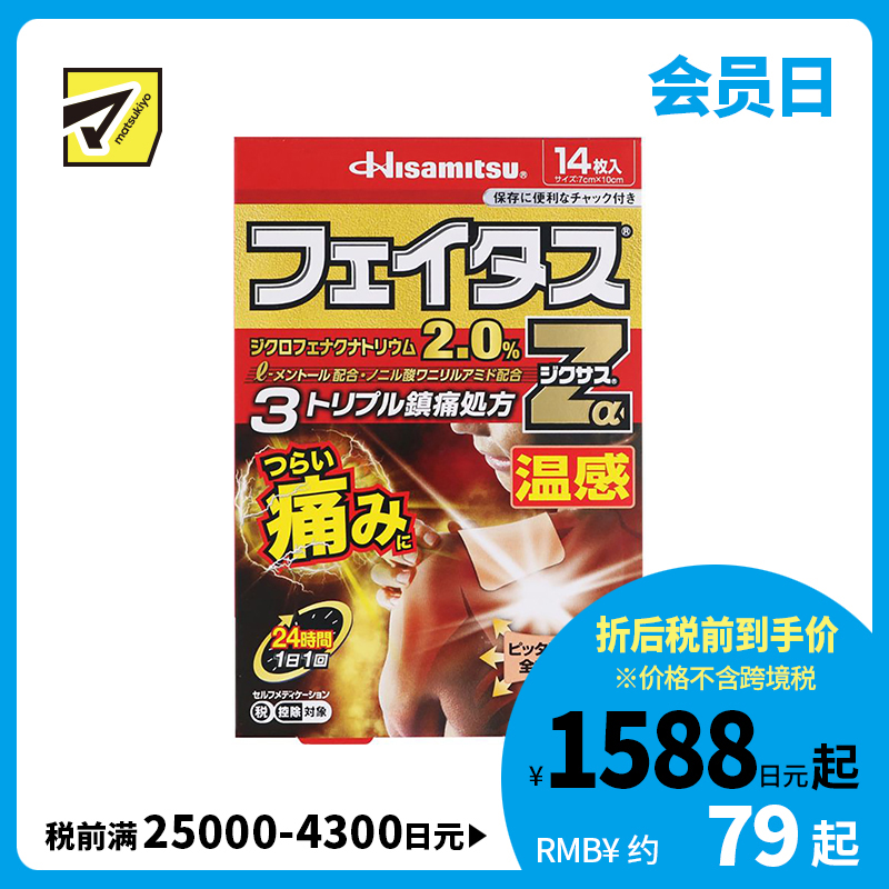 [商品名称]久光制药 斐特斯Zα 剧烈疼痛止痛膏药 腰腿疼痛 温感 7×10cm 14贴