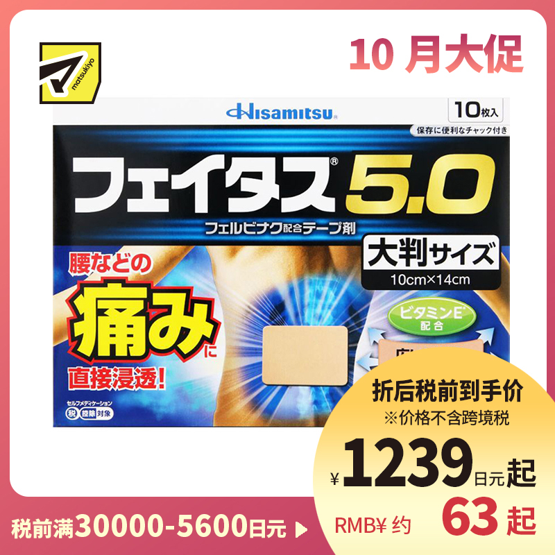 [商品名称]久光制药 斐特斯5.0 扭伤止痛消炎药膏贴 腰部贴大片 10×14cm 10贴