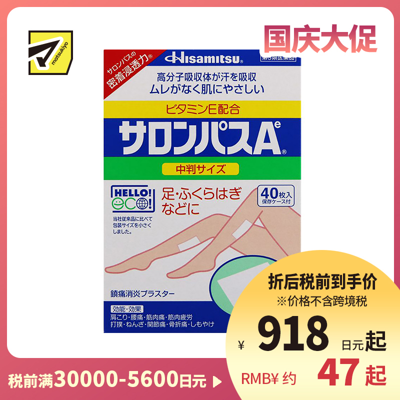 [商品名称]久光制药 撒隆巴斯Ae 止痛膏药贴消炎镇痛 小腿腿部膏药 6×9cm 40贴