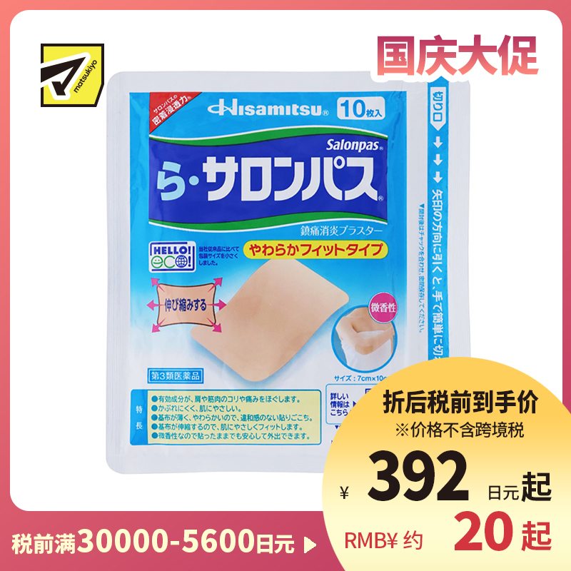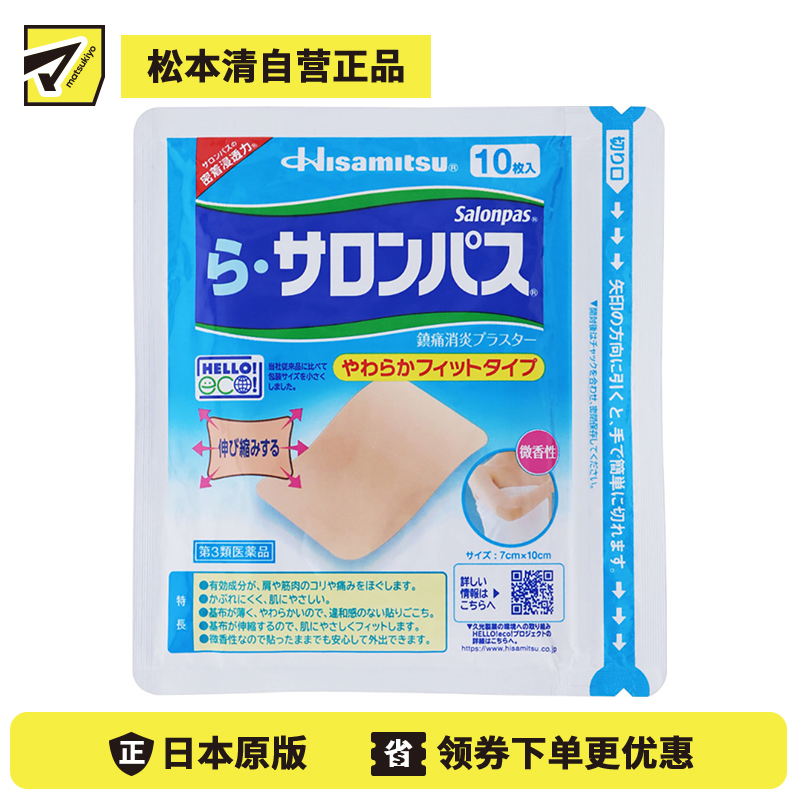 [商品名称]久光制药 Ra撒隆巴斯 柔软亲肤 具伸缩性 舒缓肩颈腰背痛肌肉酸痛膏药贴 10片 【第3类医药品】温和 长效止痛