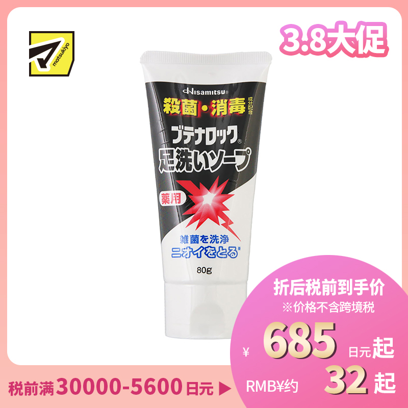 [商品名称] 久光制药 杀菌除臭 抑制汗脚止痒 洗足膏 80g Butenalock 脚部消毒清洁 防止脚臭 洗脚膏 浴足剂