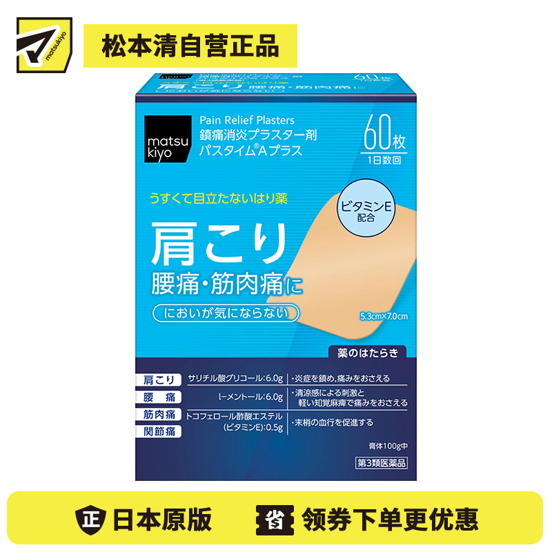 [商品名称]matsukiyo松本清 祐德药品 消炎镇痛贴腰痛肩痛肌肉酸痛膏药 60枚