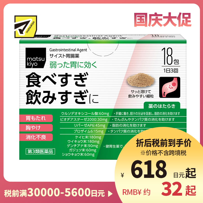 [商品名称]松本清 matsukiyo 肠胃药 缓解宿醉胃胀胸口灼热消化不良 细颗粒 18包【第3类医药品】