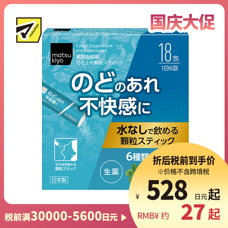 [商品名称]松本清 matsukiyo 汉方止咳药 颗粒状 6种中草药舒缓喉咙不适 18包 【第3类医药品】
