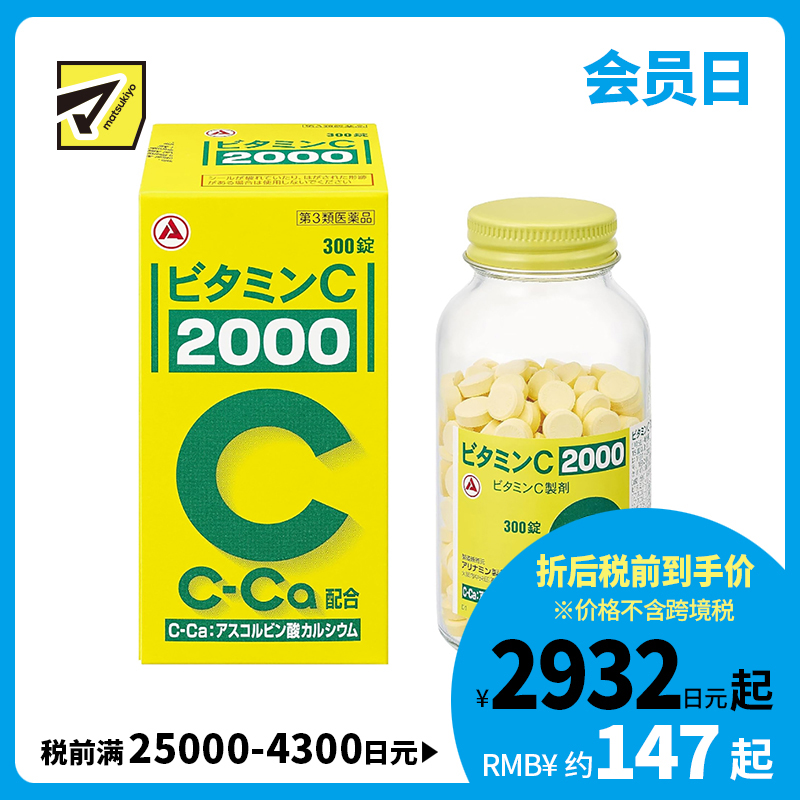 [商品介绍]含有维生素C(抗坏血酸)和维生素C钙盐(抗坏血酸钙)以及维生素B2的维生素C片剂。每片含有维生素C 2000毫克和钙68毫克,帮助净白肌肤,有效改善因斑点、雀斑、晒斑和皮疹引起的色素沉着。同时,加速焕活新能量,增强免疫力,加强血管壁强度,预防牙龈出血和流鼻血。适用于身体疲劳时、怀孕和哺乳期、疾病期和康复期的体力下降时及老年人补充维生素C。