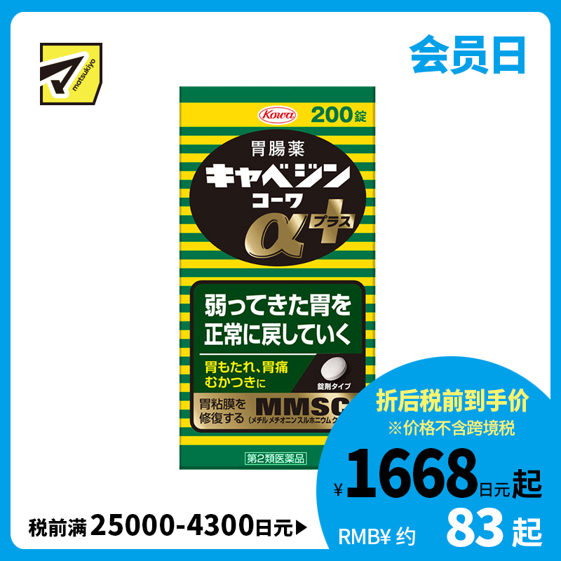 [商品名称]兴和 修复受损胃黏膜 健胃肠胃药α+ 加强版 200粒 KOWA 紫苏叶精华改善胃机能 胃仙U【第2类医药品】
