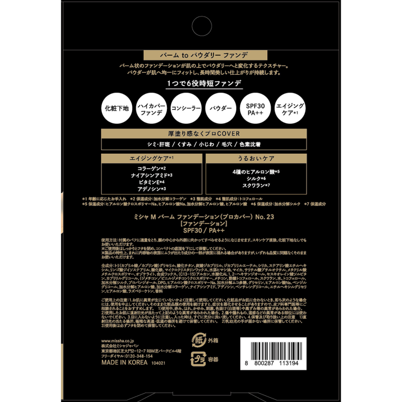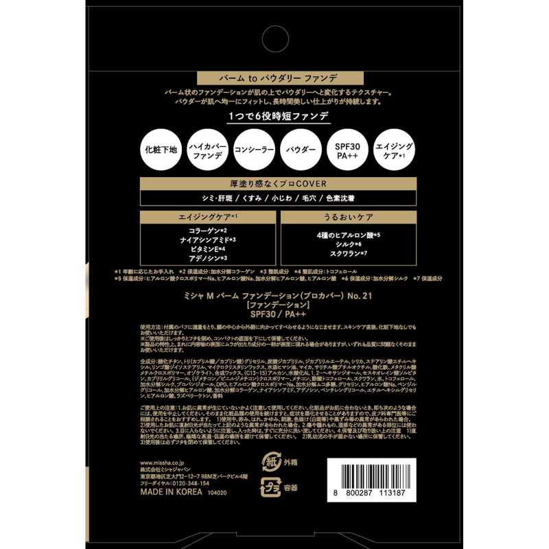1号仓-谜尚 六效合一 高遮瑕力 持续水润 粉底霜 8g SPF30 PA++ MISSHA 细腻服帖 改善肤质观感 自然妆效